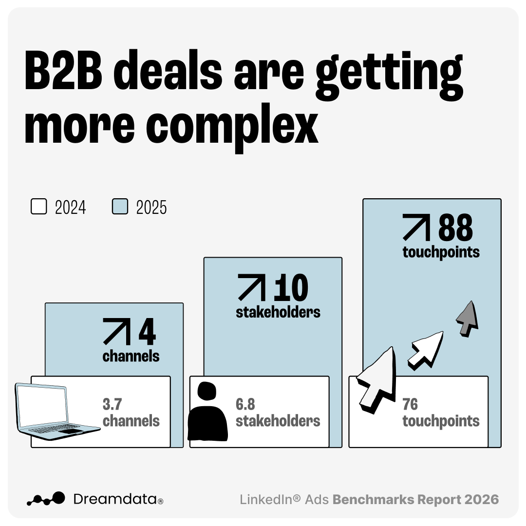 Last year, we published our 2025 Linkedin Ads Benchmarks report showing LinkedIn Ads delivered 113% return on ad spend (ROAS) across Dreamdata customers.