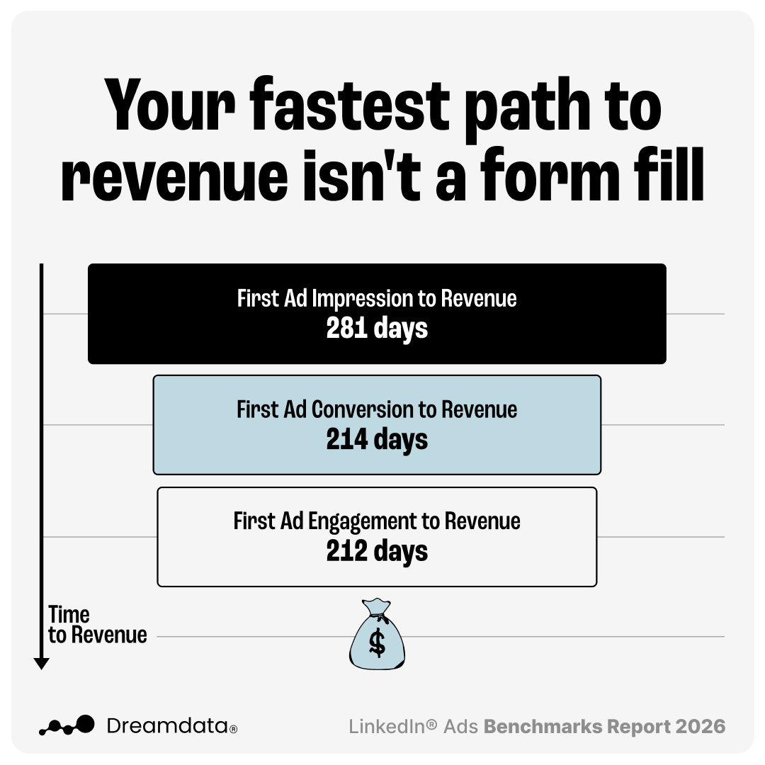 To understand how far back that influence actually starts, we looked at the average time from different types of LinkedIn Ads signals to closed revenue: