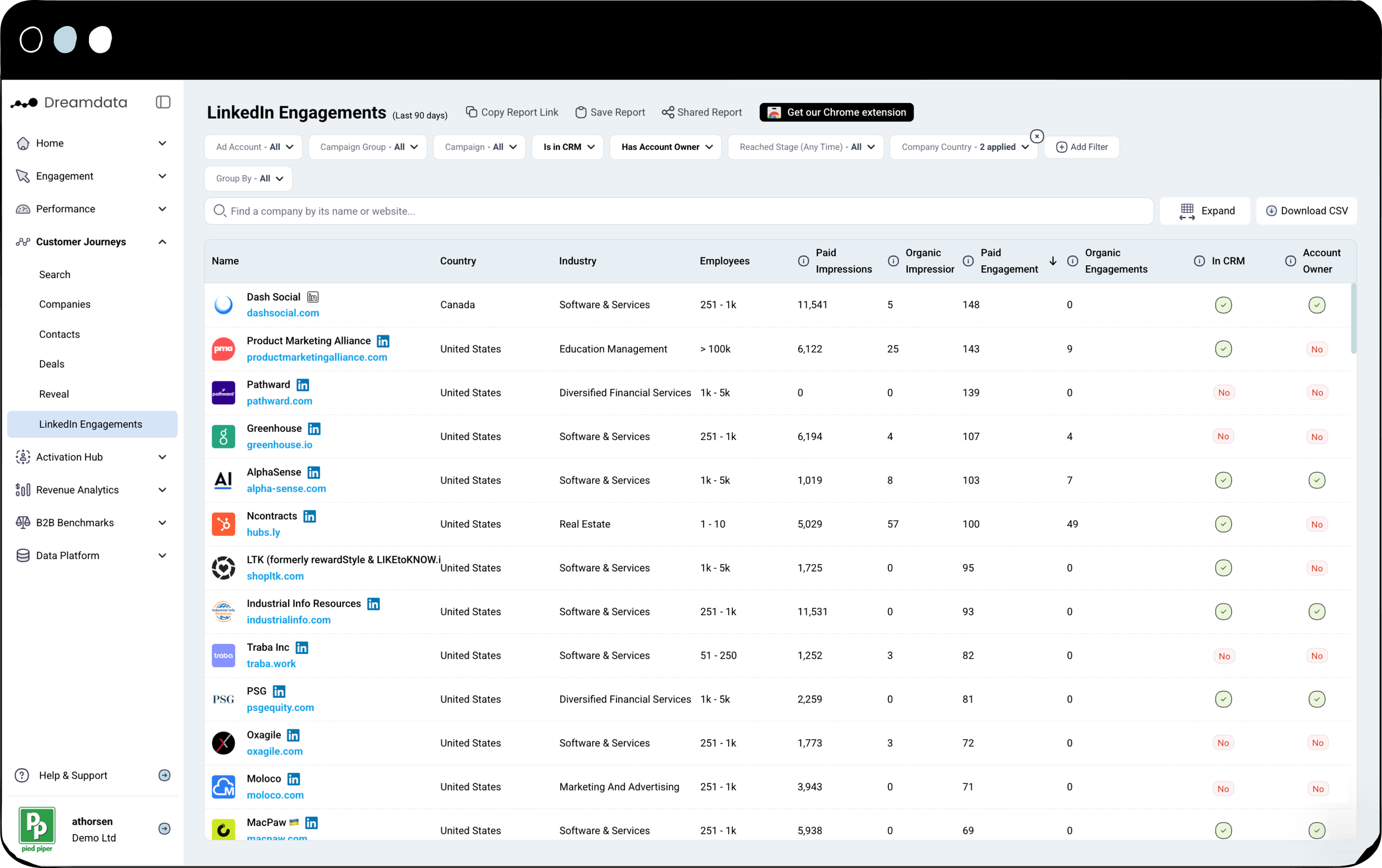 This means Dreamdata can now surface significantly more of the accounts interacting with you on LinkedIn.