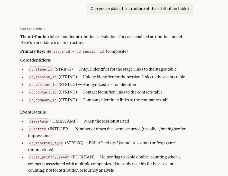 tl;dr Dreamdata customers already use our Data Warehouse to run custom analytics queries and power external BI tools. Now it’s possible to connect your Data Warehouse to AI assistants to enable powerful agentic workflows.