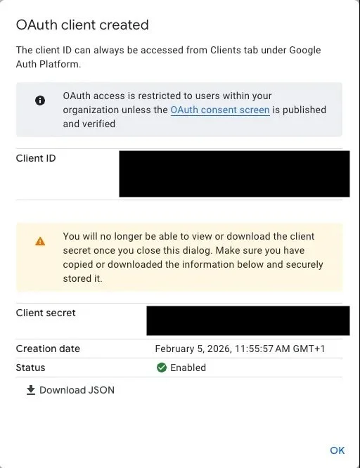 b. OAuth Client ID: The Client ID from your GCP OAuth client