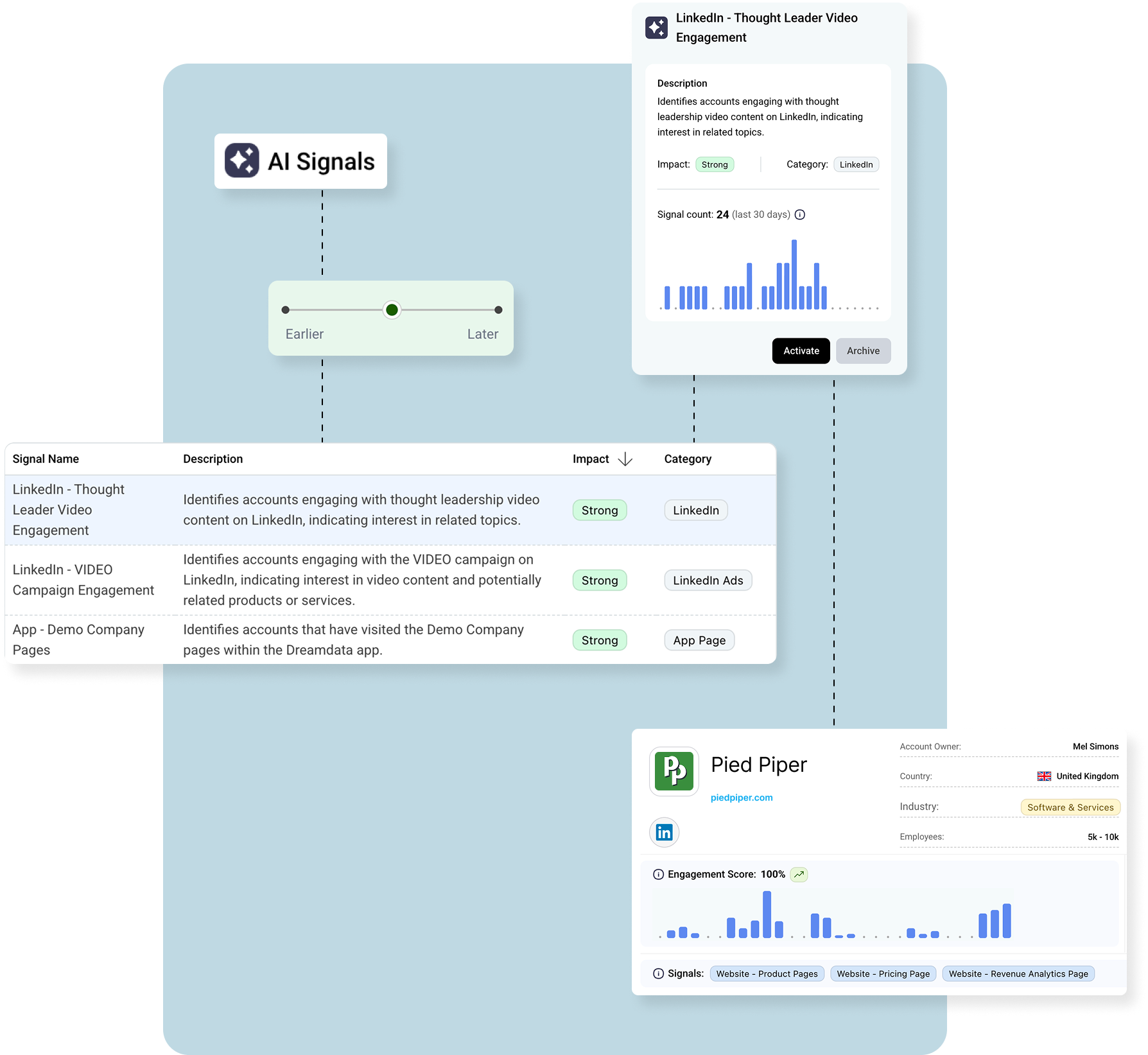 Real buying intent is hard to see. Huge amounts of data mean intent signals are hidden in the noise or lost across siloed tools, leaving your teams guessing. Dreamdata AI Signals stops the guesswork.