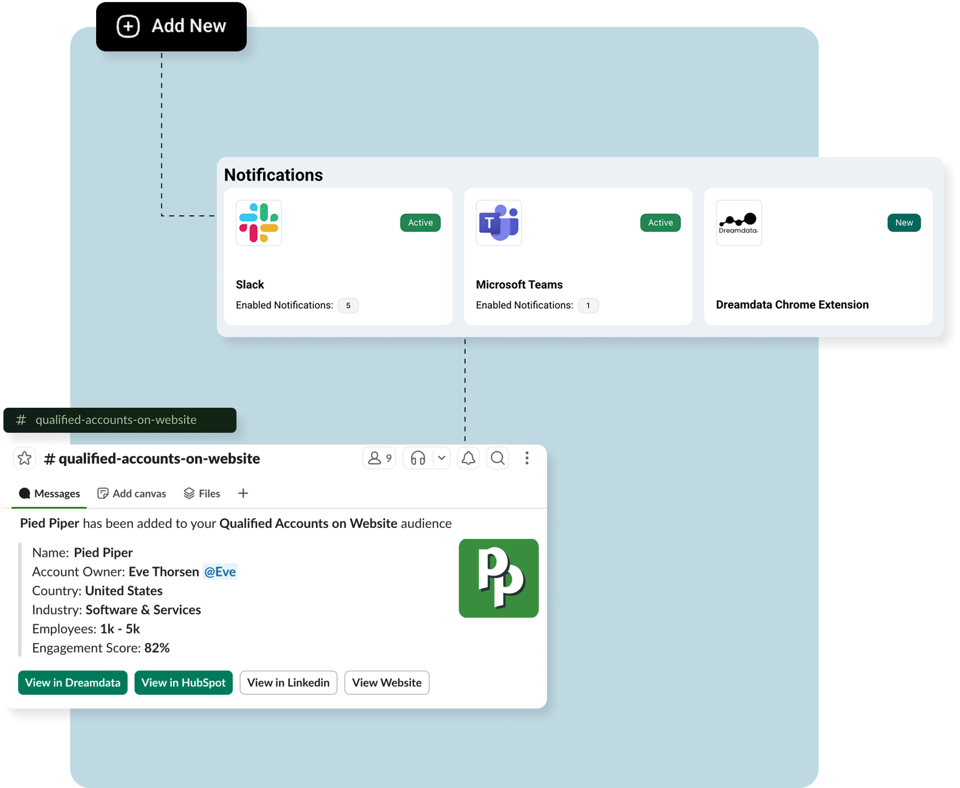 Respond to buyer signals instantly with notifications on Slack or Microsoft Teams. Ensuring your Sales teams always strike while intent is hot.