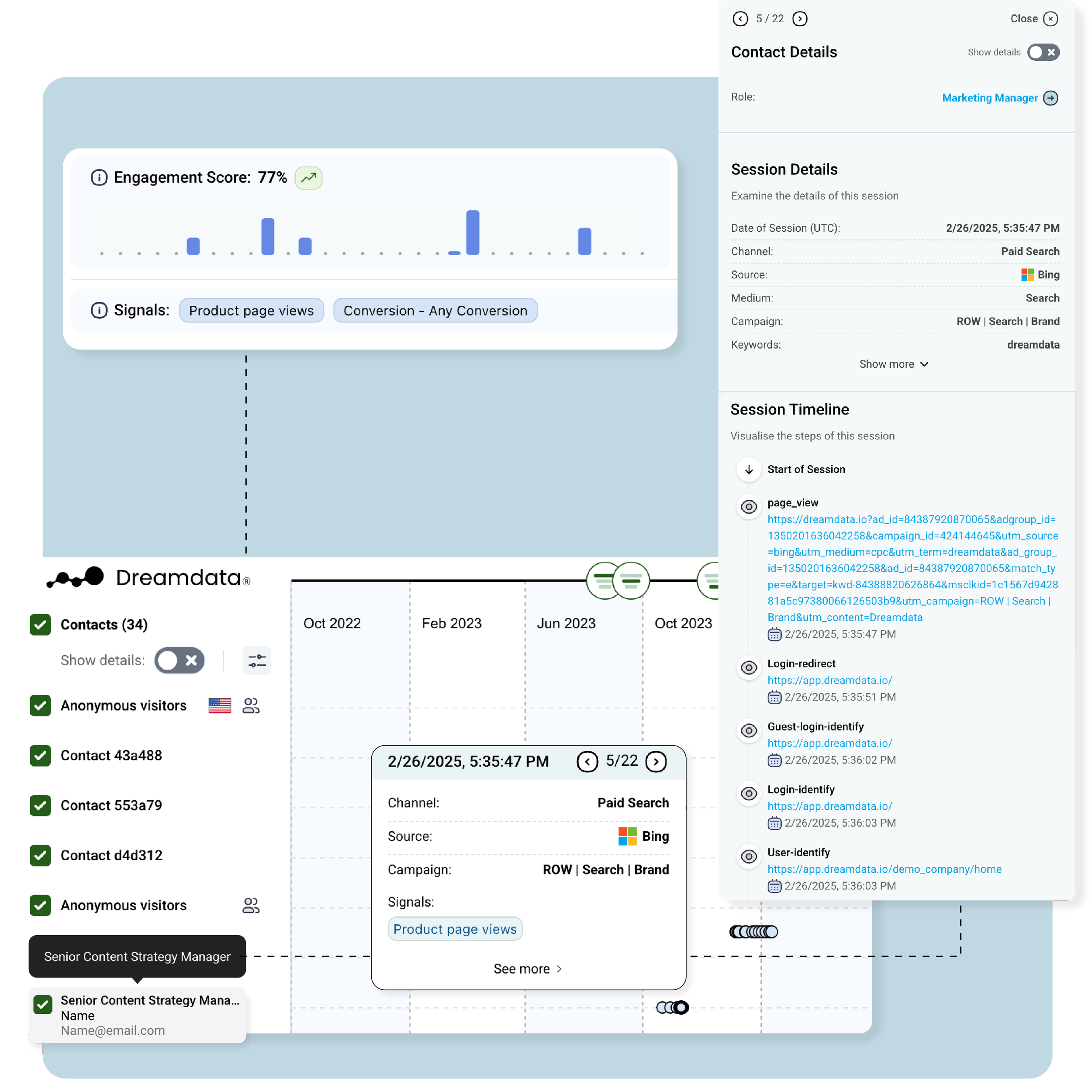 Examine any touchpoint in detail, such as pages visited, content viewed, form submits, and more.