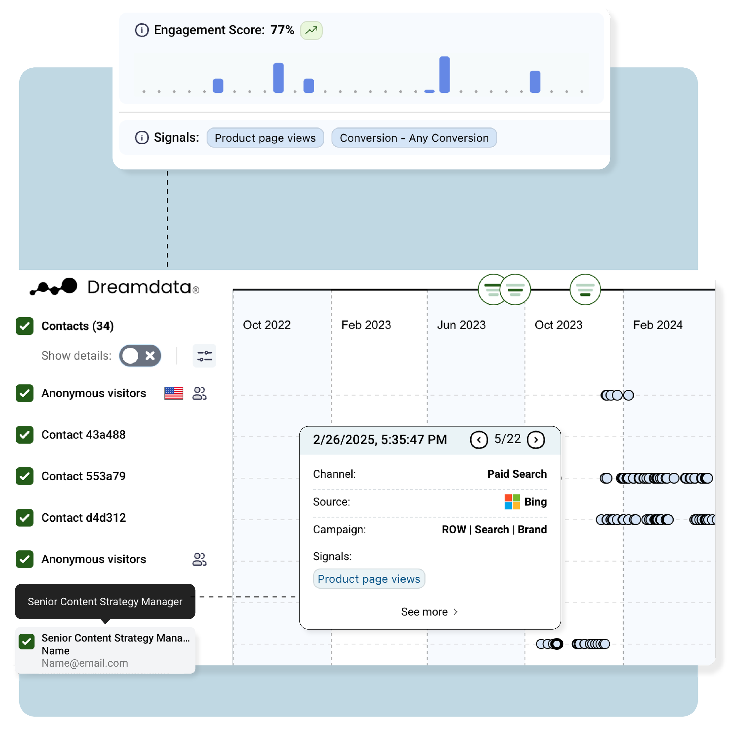 As an official LinkedIn and G2 Partner, we integrate with their intent data to show anonymous account-level touches.